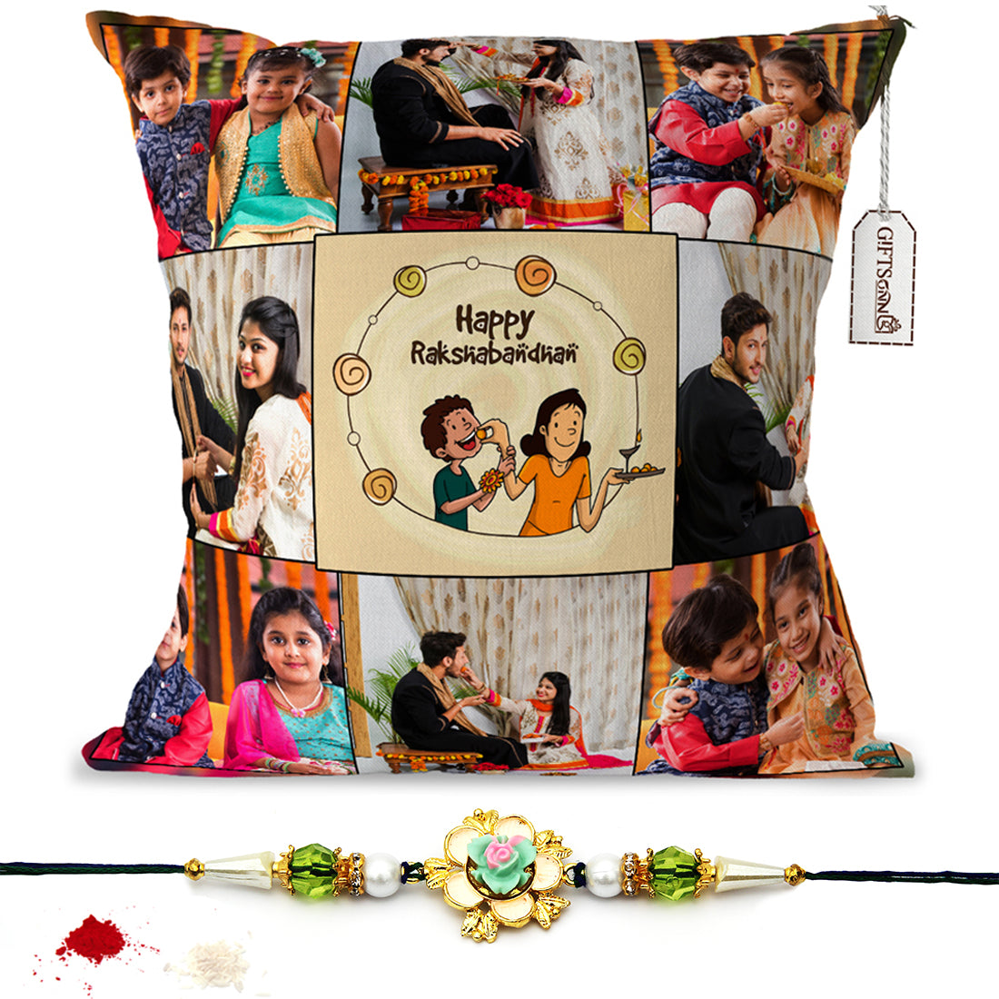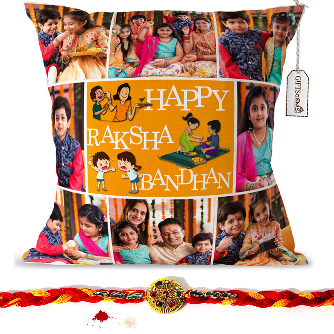 Personalized with text happy raksha bandhan pillow/cushion- (12 * 12- inch) gifts for rakhi, gifts for brother, gifts for sister